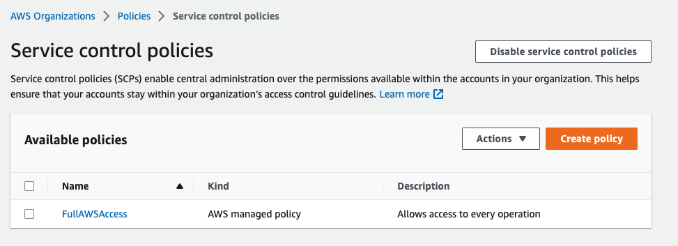 5. Enable AWS Account Management and SCP (Service Control Policies)
